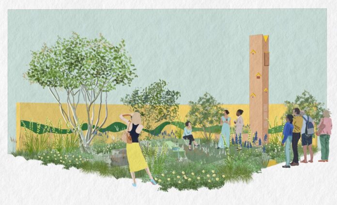 Wildlife will find shelter, food, water, and nesting materials. The habitat tower invites birds, bees, butterflies, moths, and bats to inhabit the garden. Drifts of pollinator-friendly native and non-native perennials and grasses in shades of yellow, white and blue are punctuated by Irish native trees and shrubs. The water feature and the habitat-rich groundscape provide ideas for the visitor on how to attract wildlife into their gardens. In the gathering space at its heart, guests can relax and savour what’s good in life.